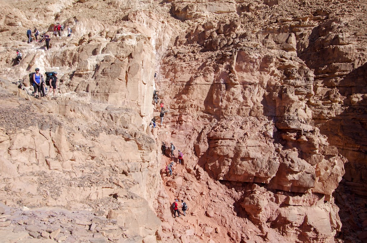 однако ж, деваться было некуда, и, мы стояли и прикидывали варианты прохода. тут появились еще две группы, идущие вверх. в виду грандиозности препятствия руководитель очень бурно и экспрессивно что-то изрек на иврите. потом попытался перейти на английский и, в итоге, прибег к помощи спутницы, говорящей по-русски. общение было очень эмоциональным)) когда же мы честно сообщили, что вовсе не заблудились, а просто идем по треку, руководитель и две его группы... бурно аплодировали нам!)) судя по реакции, велосипедистов на этом маршруте видят не часто. тем более - с баулами)). пока группа отдыхала наверху, мы челноками спустили рюки, и цепочкой - велики. тинейджеры глядели изумленно-уважительно: поскольку спуск всей нашей поклажи прошел даже несколько быстрее, чем подъем некоторых из группы (явно с избыточным весом и плохой физухой)