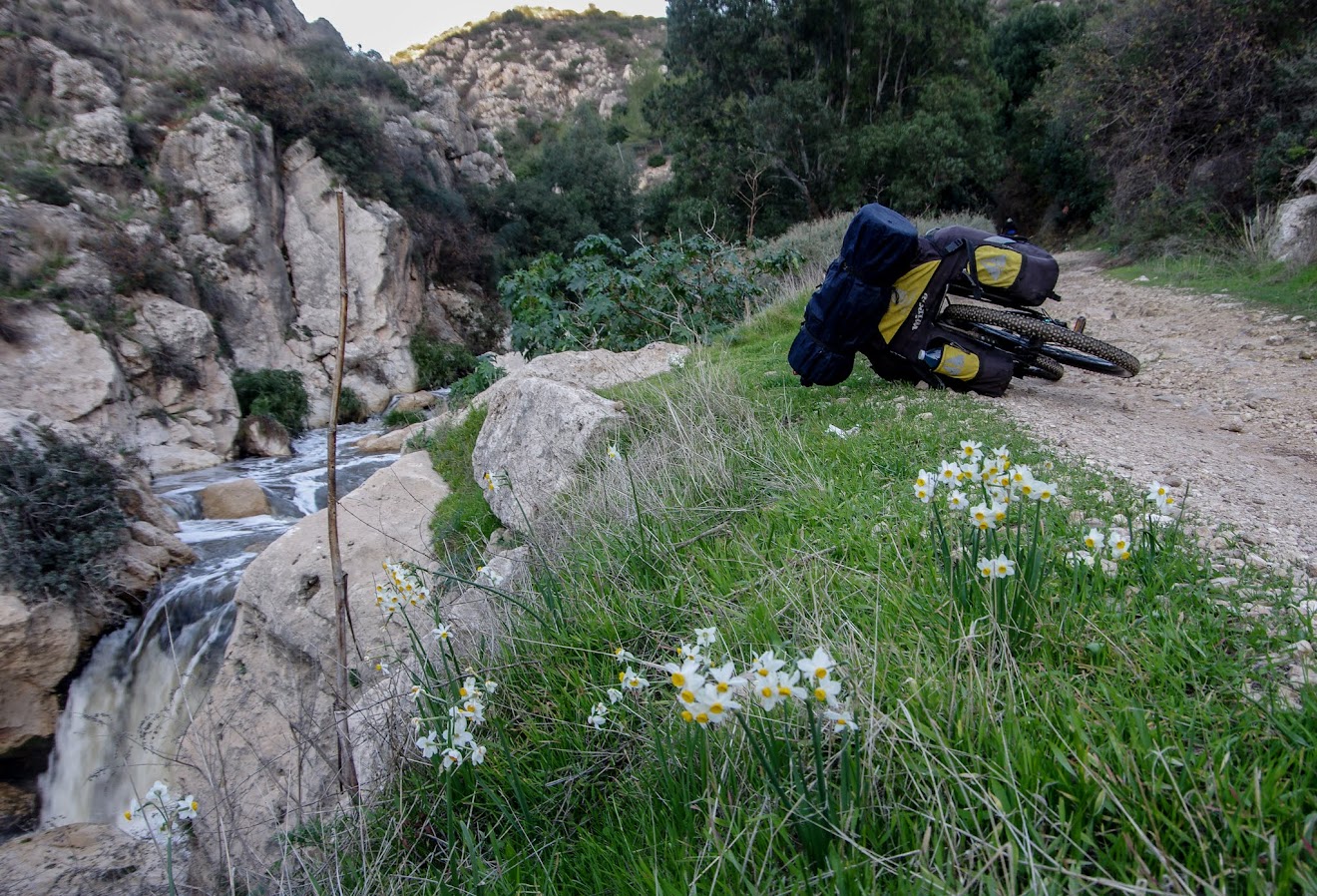 но нас ждала нерукотворная красота тщательно выверенного трейла от израильских велотоварищей в лице Игоря Скорубского. и мы вихрем, несмотря на баулы, понеслись вдоль Яркона. наш полет был несколько грубовато прерван прозой жизни: накануне прошедшие дожди годно разукрасили грунтовки.