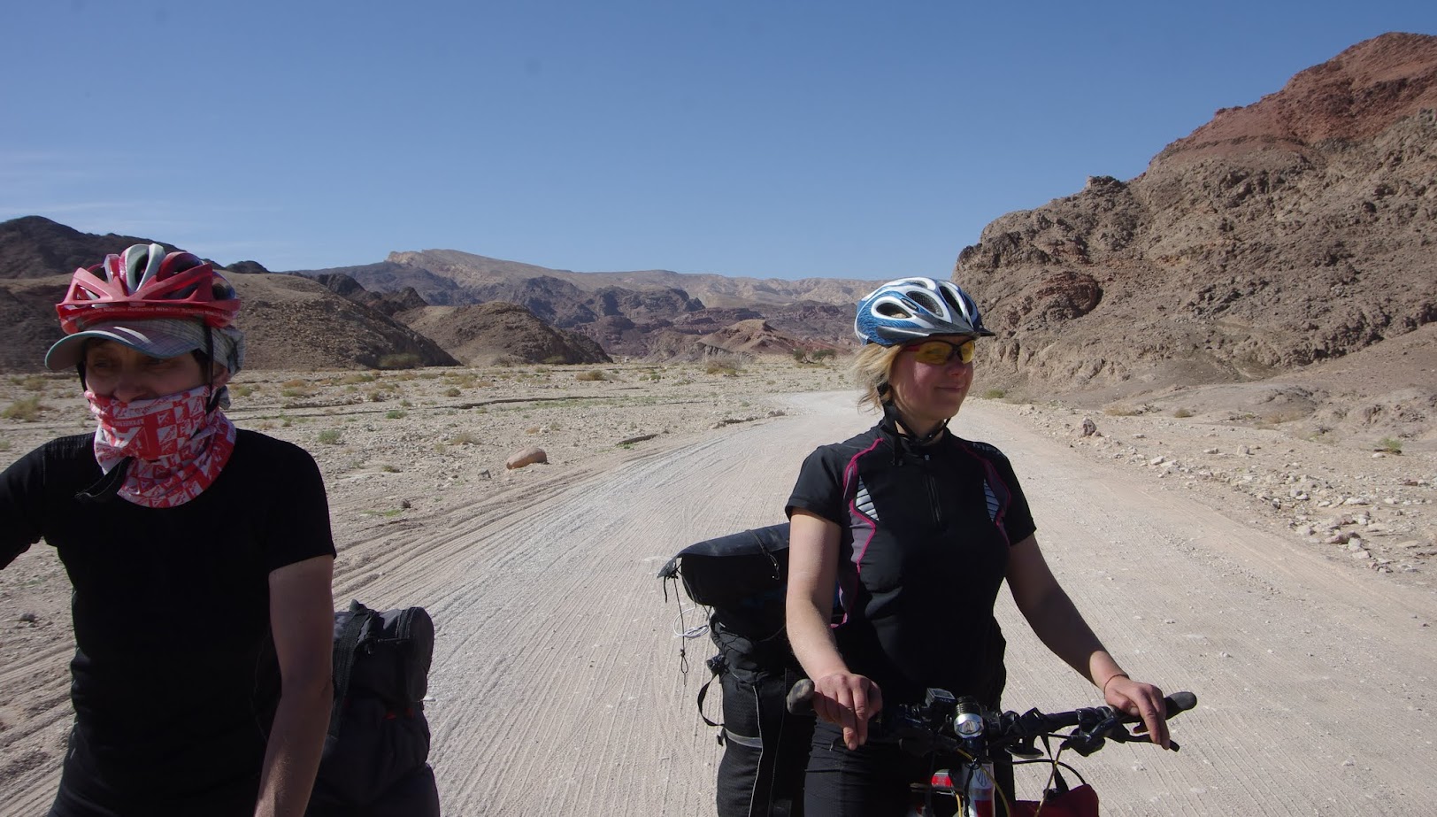 вскоре рюки таки пересели на багажники, а когда больших камней на дороге стало поменьше мы и вовсе поехали. радости вкручивания не смог омрачить даже дикий встречный ветер - лента грунтовки изящно пронизывала пустыню Негев.