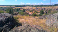 Долгонько медитировали - гранитные выходы в степи и абсолютная спокойная гладь реки внизу, приправленные полянками цикория, шалфея, коровяка и утонченными мальвами. Полное безлюдие добавляет месту скилы привлекательности.