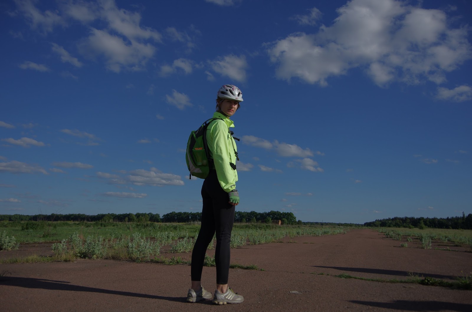 Бывшая площадка авиационно-химических работ, заросшая осотом, бетонной ВПП бодро бежала в облака . Почувствовали себя самолетиками и воспарили - типа асфальтик подвалил)) В дырочку, в выбоинку. Так и хотелось - оторваться от земли))